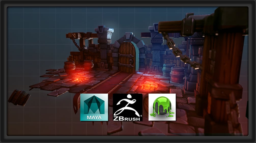 In this course we will be going through the process of creating a small stylized dungeon environment from the blockout stage to the final presentation. I will be guiding you through the process of modeling the low poly assets and show you different techniques of UVing in Maya. We will then take our assets into ZBrush where I will be showing how to define all the materials that you will find in this environment.